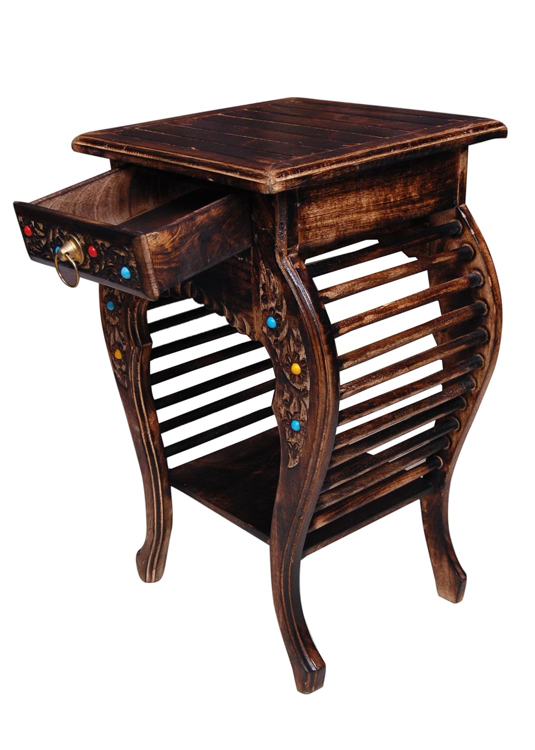 Grahshilp Furniture and Decoration Bedside Table (Brown)